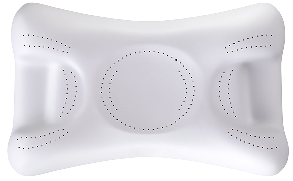 Les zones de ventilation de l'oreiller empêchent l'accumulation de chaleur. Les trous sont quant à eux concentrés autour des joues et des yeux, zones les plus sujettes aux gonflements.